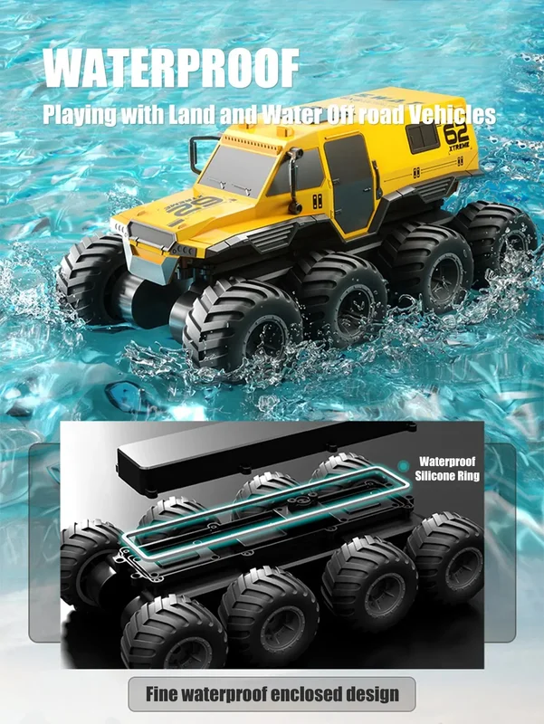 Voiture amphibie télécommandée pour garçon, grand pied, véhicule d’escalade tout-terrain, camion de course de vitesse, jouet inoler étanche, 8×8, 2.4G, 8 rouesPrésentation