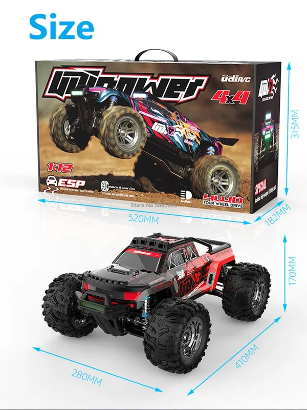 Description du produit: 1:12 2.4G véhicule à grande vitesse à quatre roues motrices grande voiture à pied