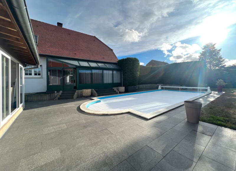 Maison cossue avec grande piscine sur terrain arboré de 18,25 ares.