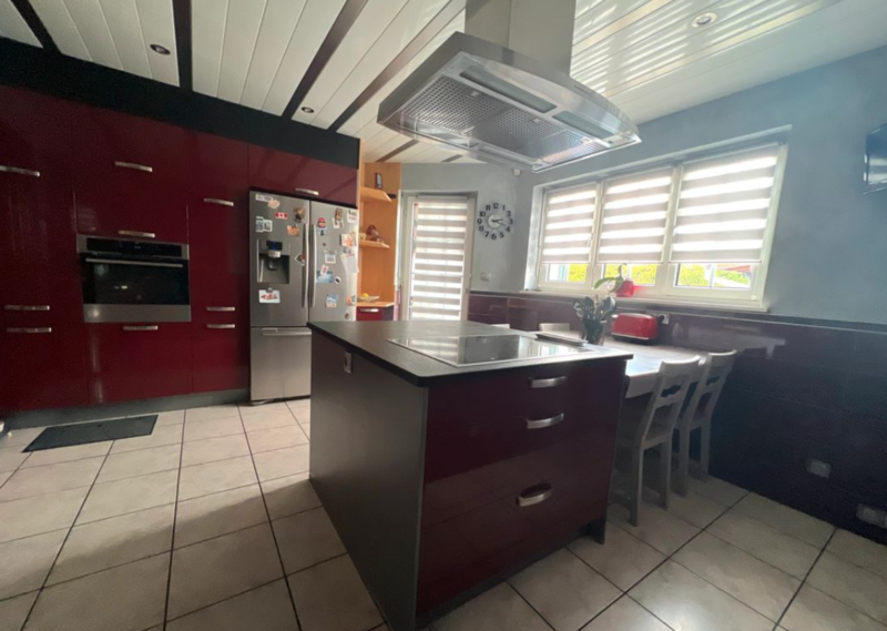 A Pulversheim (68840), entre Colmar et Mulhouse, proche des axes routiers, belle maison d’architecte de 240m2 (209m2 habitables) composée comme suit :