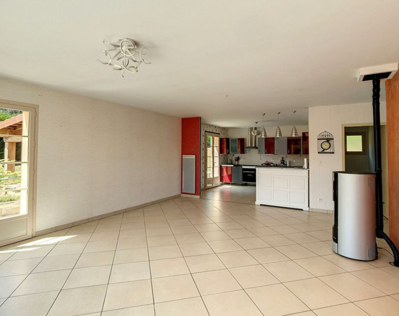 Pavillon 2007 de plein pied comprenant un séjour avec poêle a granulé (posé en 2022), une cuisine ouverte aménagée et équipée, trois chambres, une salle d’eau avec baignoire et douche, un wc avec lave-main, un garage, une cave;
