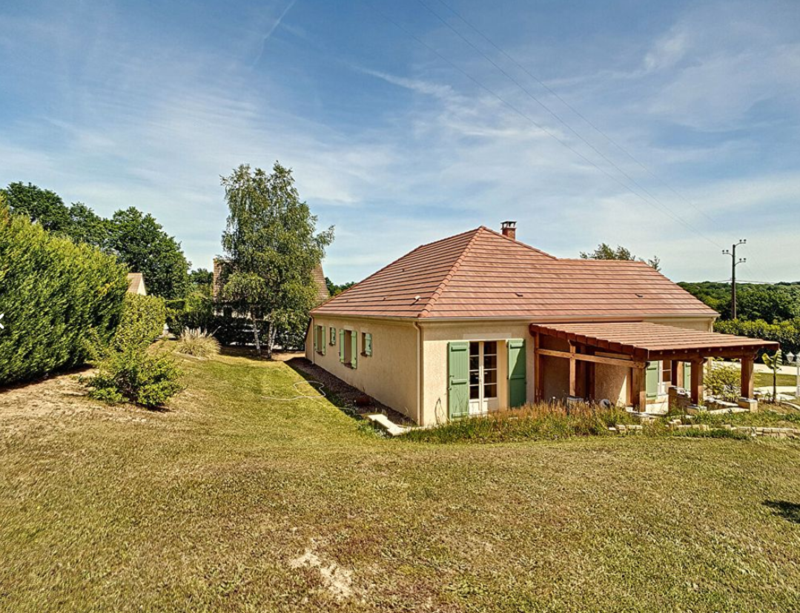 Une terrasse couverte, le tout su un terrain clos aménagée de 1300m². Tout à l’égout.