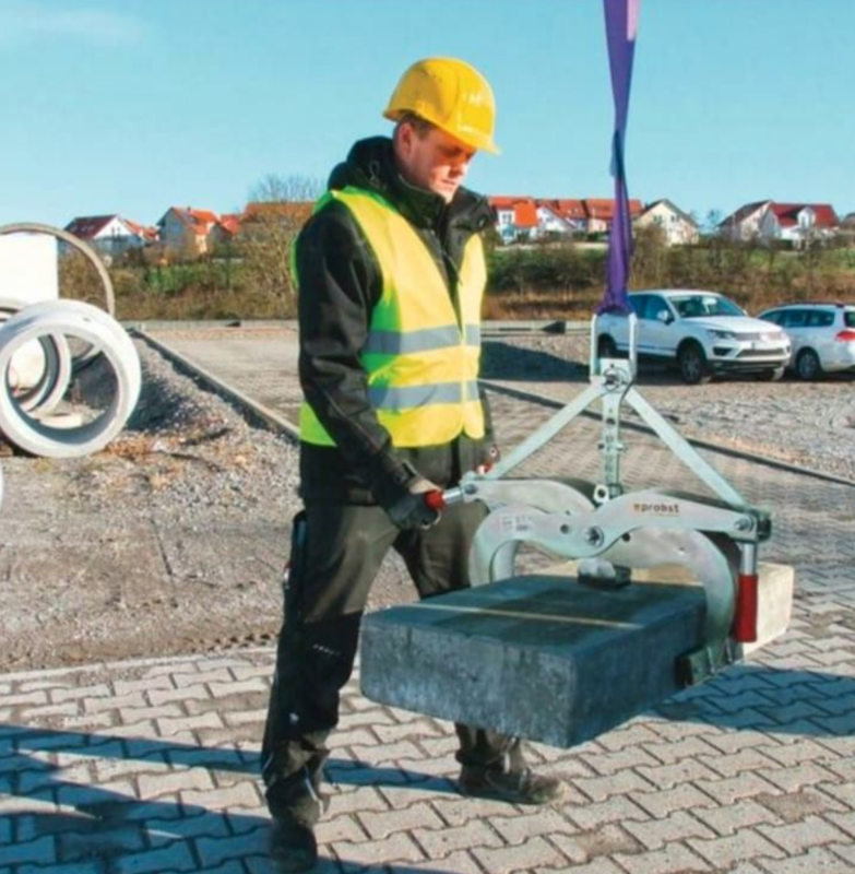 Pince de levage de blocs de béton ou pierre naturelle EXG-Maxi zone d’atteinte 0-400 mm cap.charge 600 kg poids propre 15 kg, électrogalvanisé
